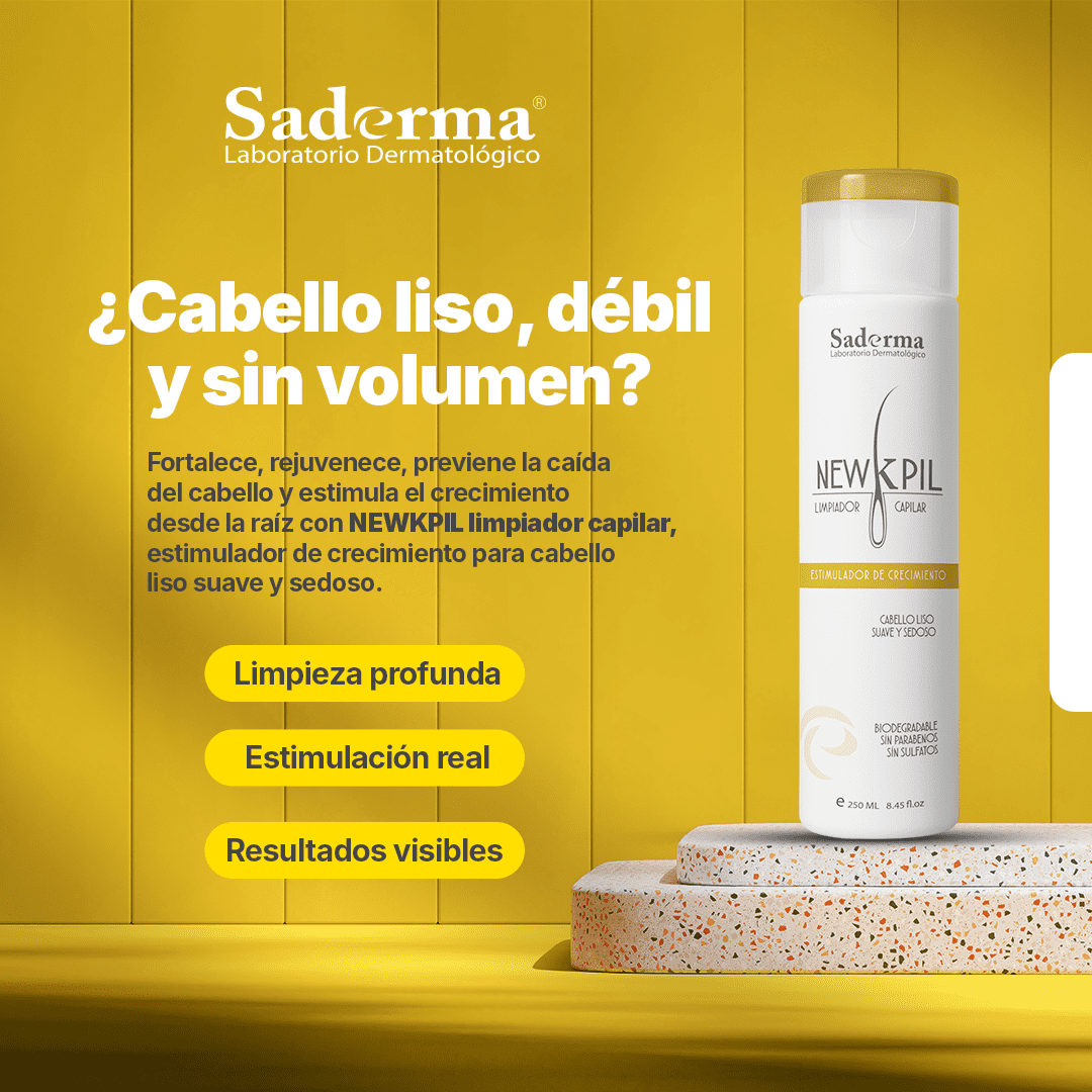 Newkpil® es un limpiador capilar de uso diario, diseñado especialmente para estimular el crecimiento del cabello liso y restaurar su fuerza desde la raíz. Su fórmula con tecnología micelar limpia profundamente sin agredir el cuero cabelludo, mientras sus activos clínicamente respaldados fortalecen el folículo y devuelven vitalidad a tu melena.